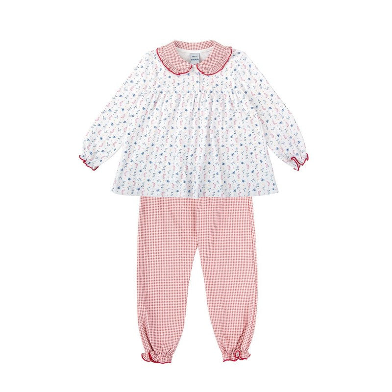 Nydelig todelt pyjamas med rødrutete krage fra Babidu i 100% bomull.