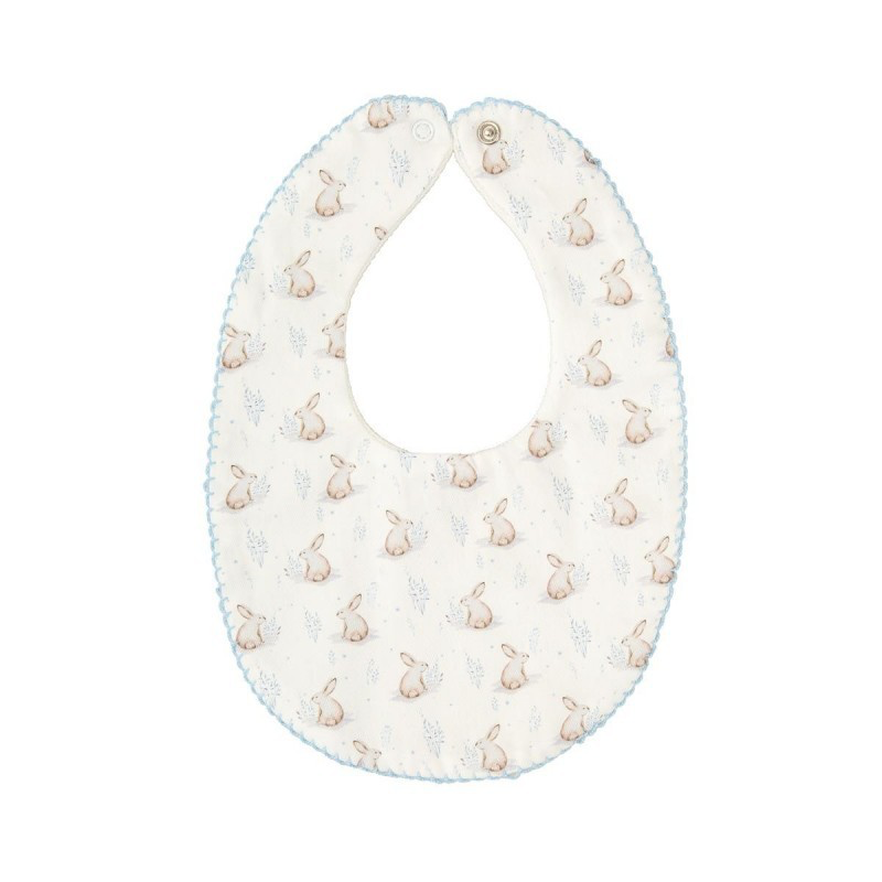 Hvit bunn med kaniner. Lyseblå kant rundt.