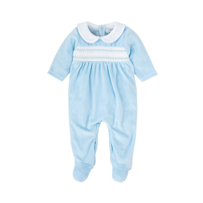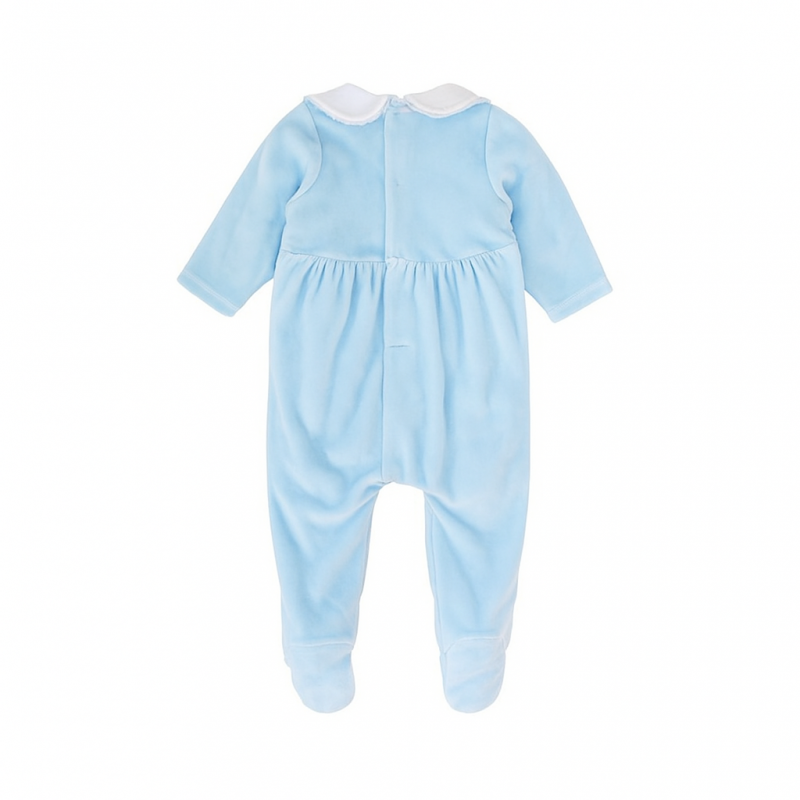 Lyseblå sparkedress fra Babidu med rund,søt krage.