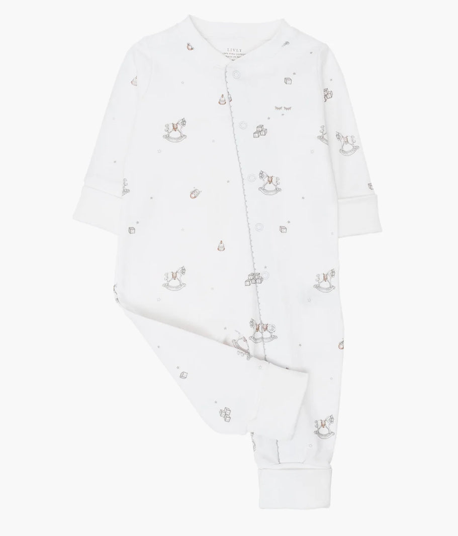 Nydelig,myk pyjamas uten fot fra Livly i mønsteret Rocking Horse.
