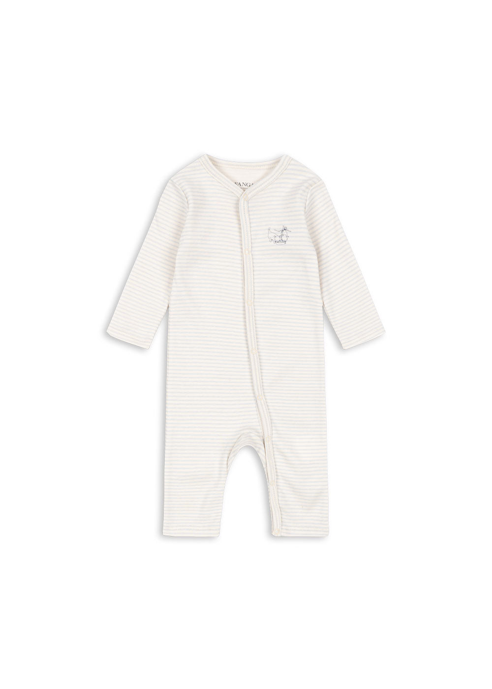 Søt heldress fra undermerket til Konges Sløjd, Fanga Fontana. Drakten er hvit med blå striper og er i 100% organisk bomull.