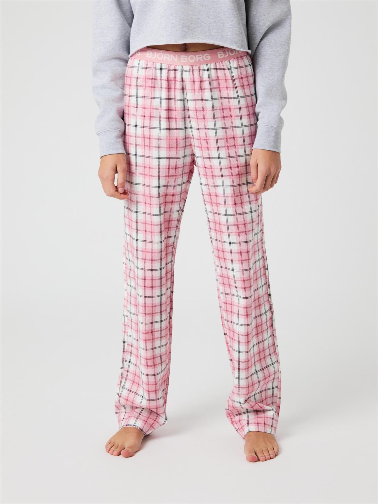 Myk pysjbukse fra Bjørn Borg i rosa og hvite ruter. Buksen er i 100% økologisk bomull. Det er lommer i siden og strikk med logo i livet.