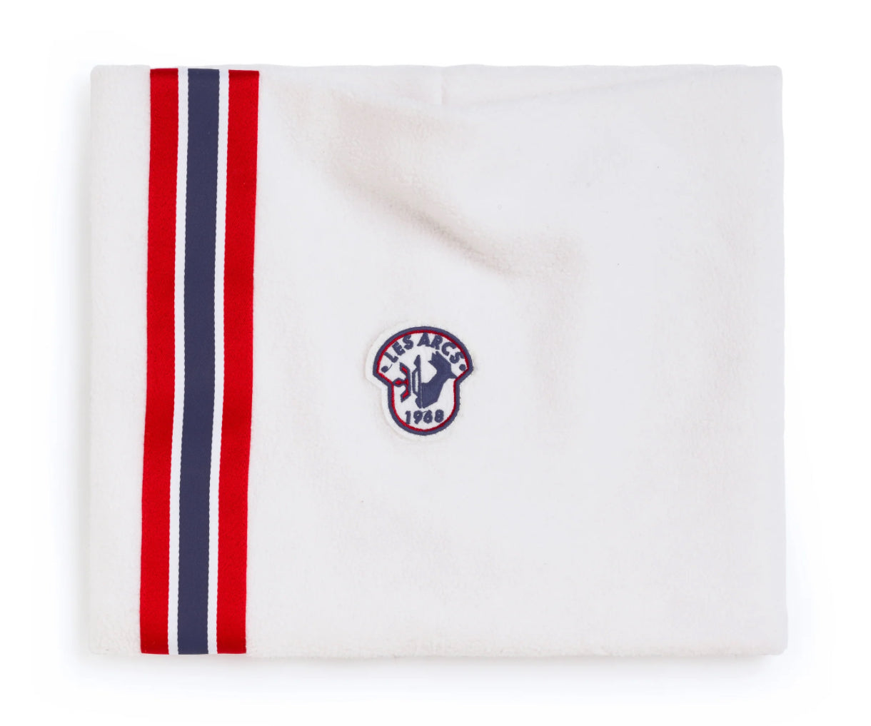 Hvit Camille limited neckwarmer med norske striper fra Les Arcs i 95% polyester og 5% elastane.