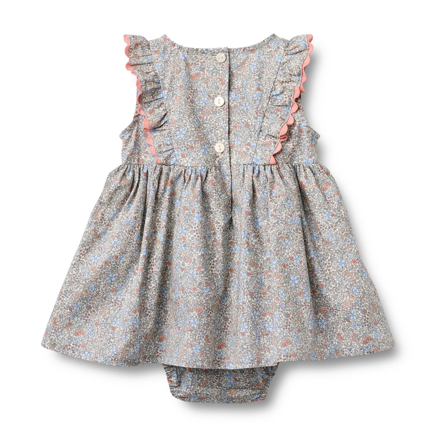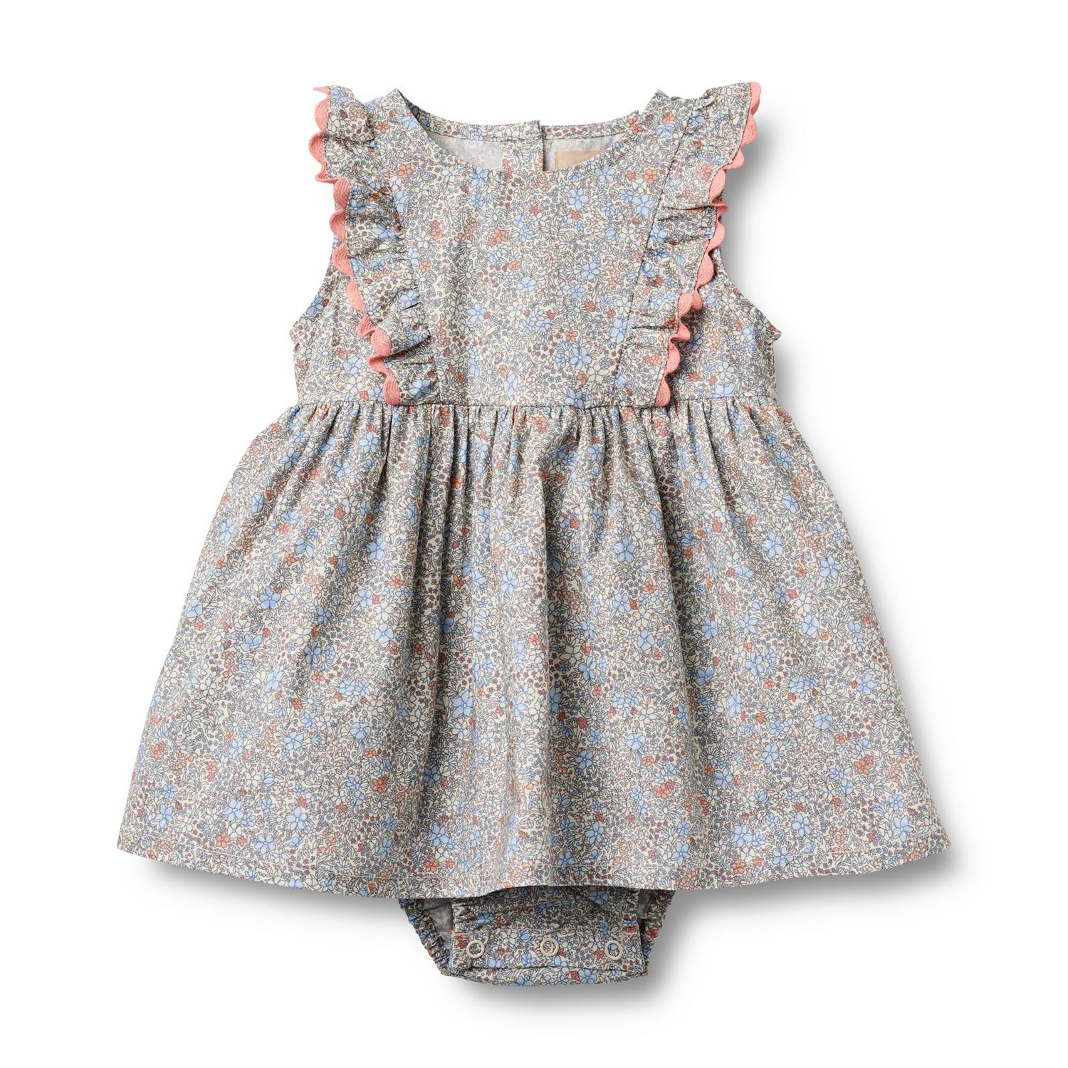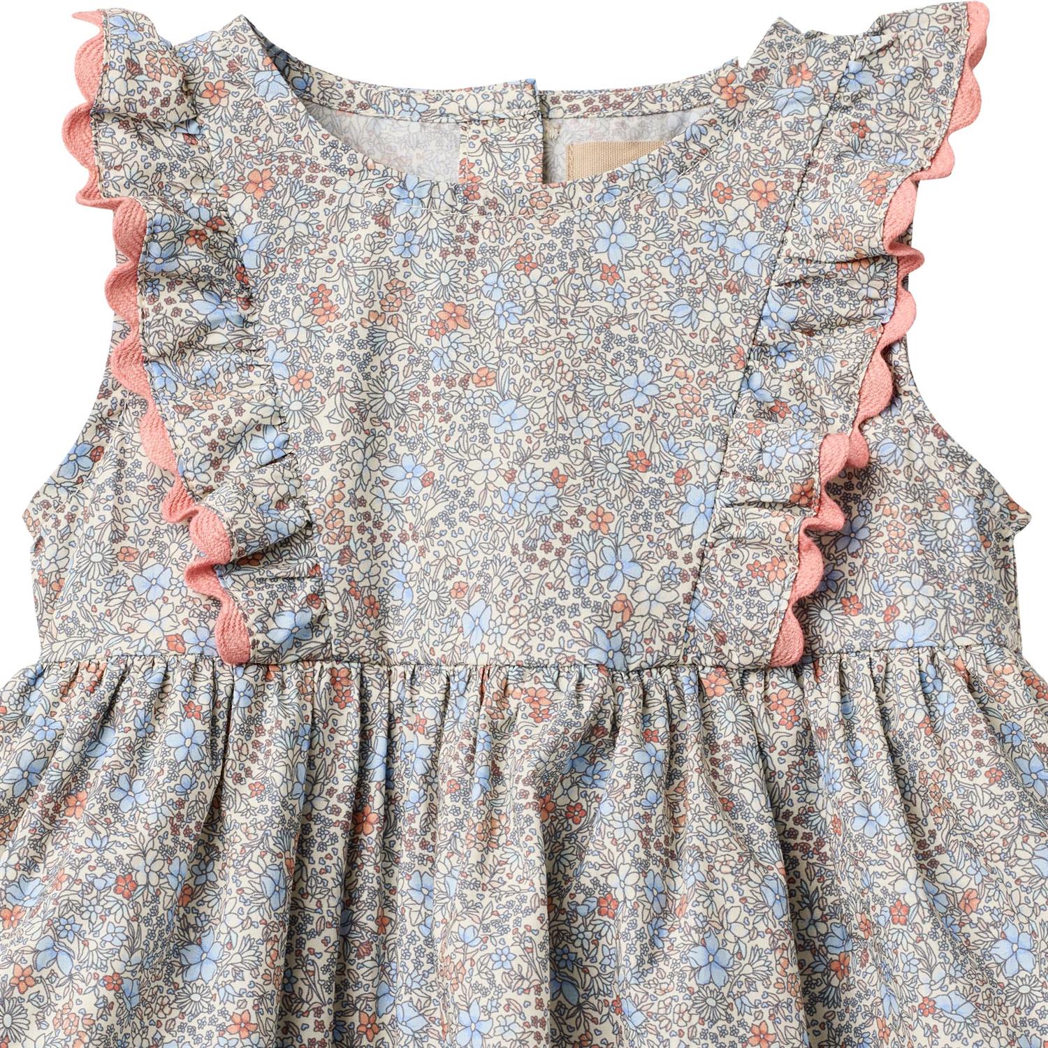 Sofia kjole i blomstret mønster fra danske Wheat. Kjolen har bleiebukse med knepping. Består av 100% organisk bomull.