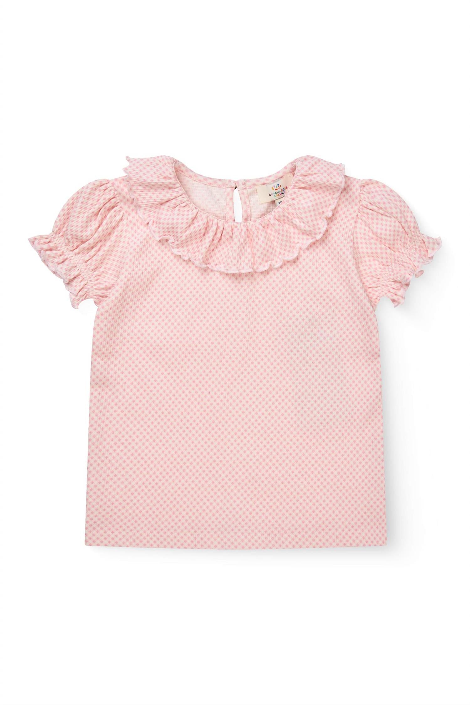 Copenhagen Colors – Bluse med blondekrage og puffermer – Rosa – Jente – 2-8 år