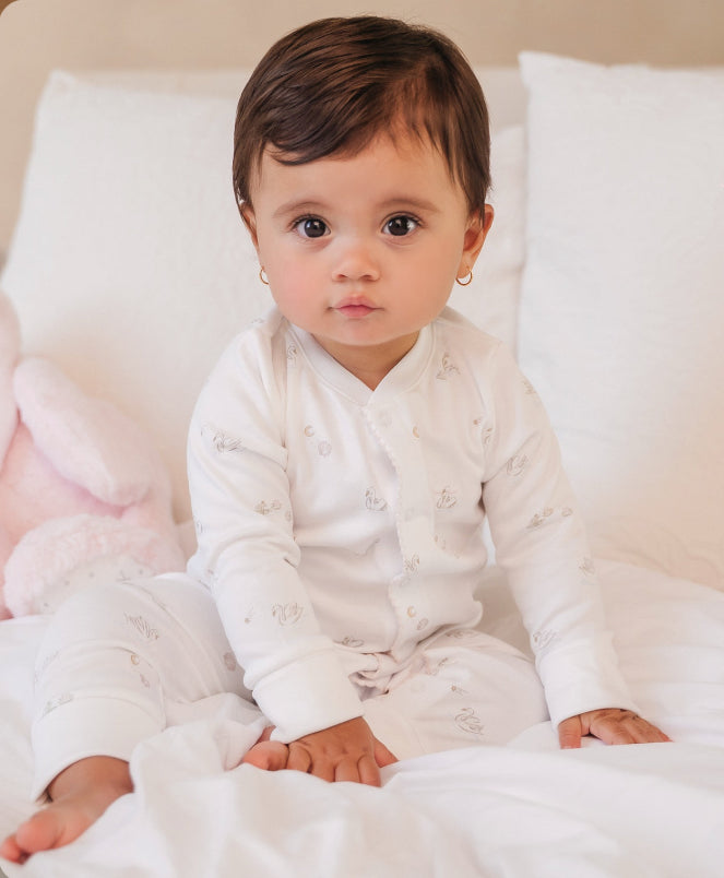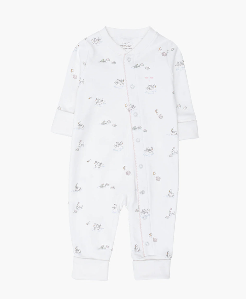 Livly - overall med svanemønster - hvit - jente - 1/3 - 9/12 mnd
