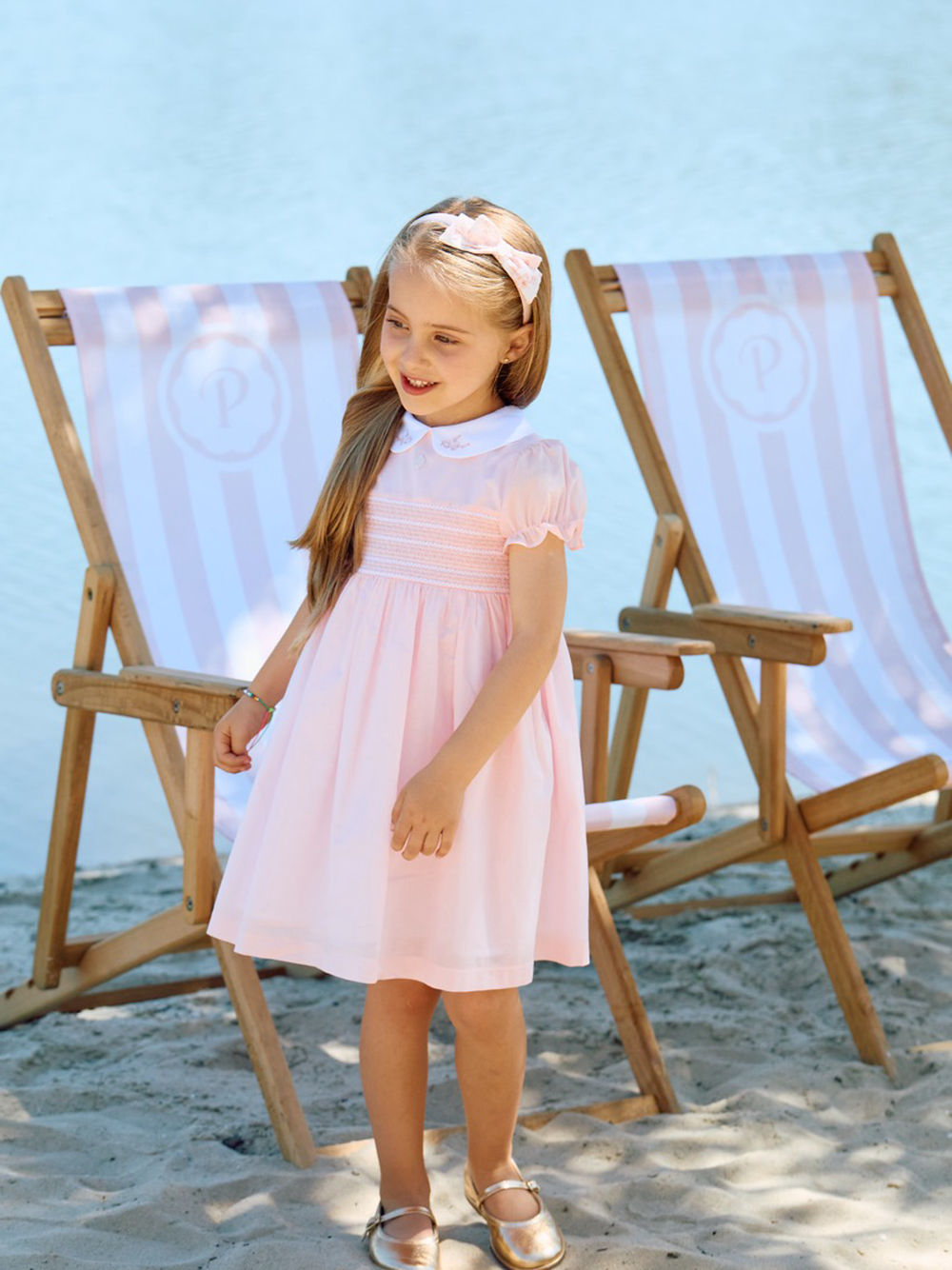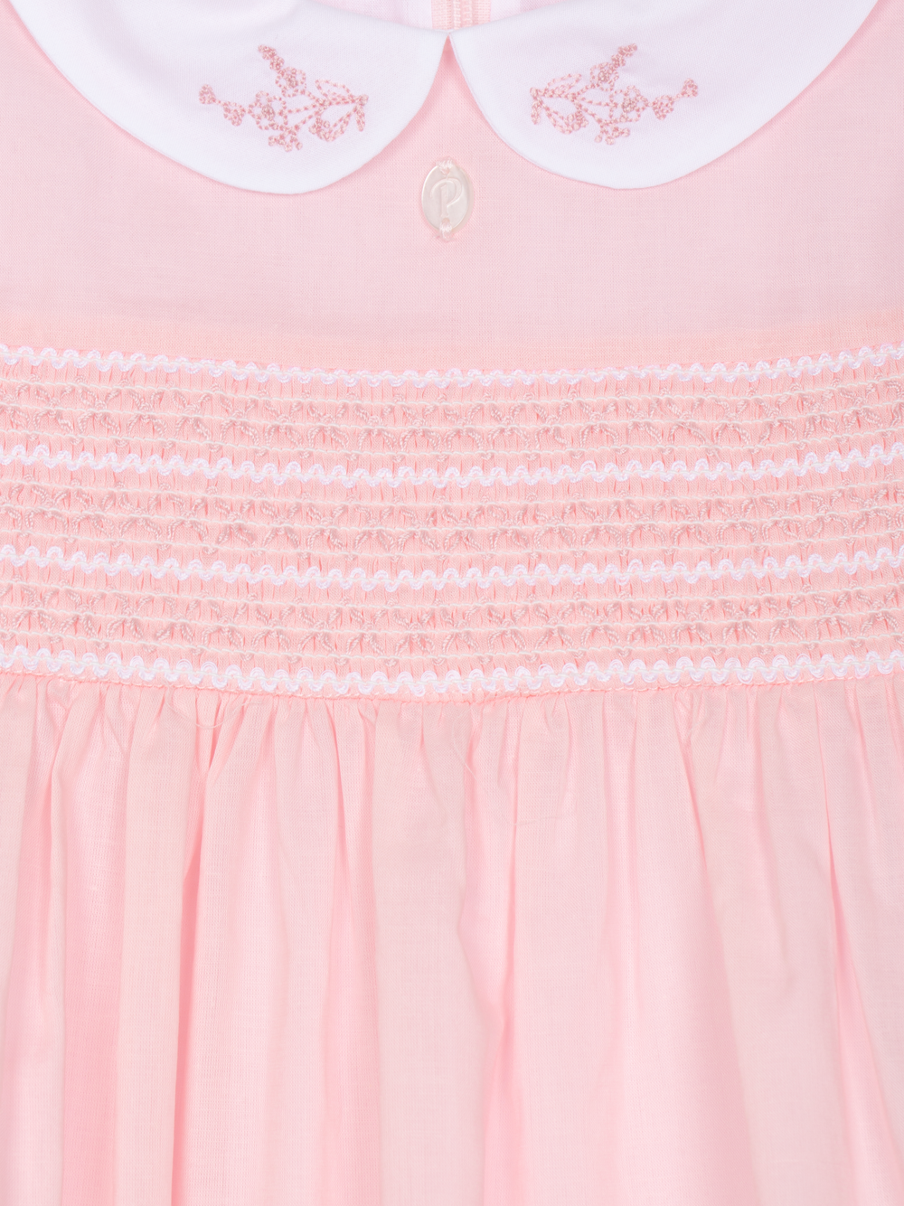 Rosa kjole fra Patachou i 100% bomull med vaffelsøm, brodert krage og glidelåslukning bak. Passer jenter 0-8 år.
