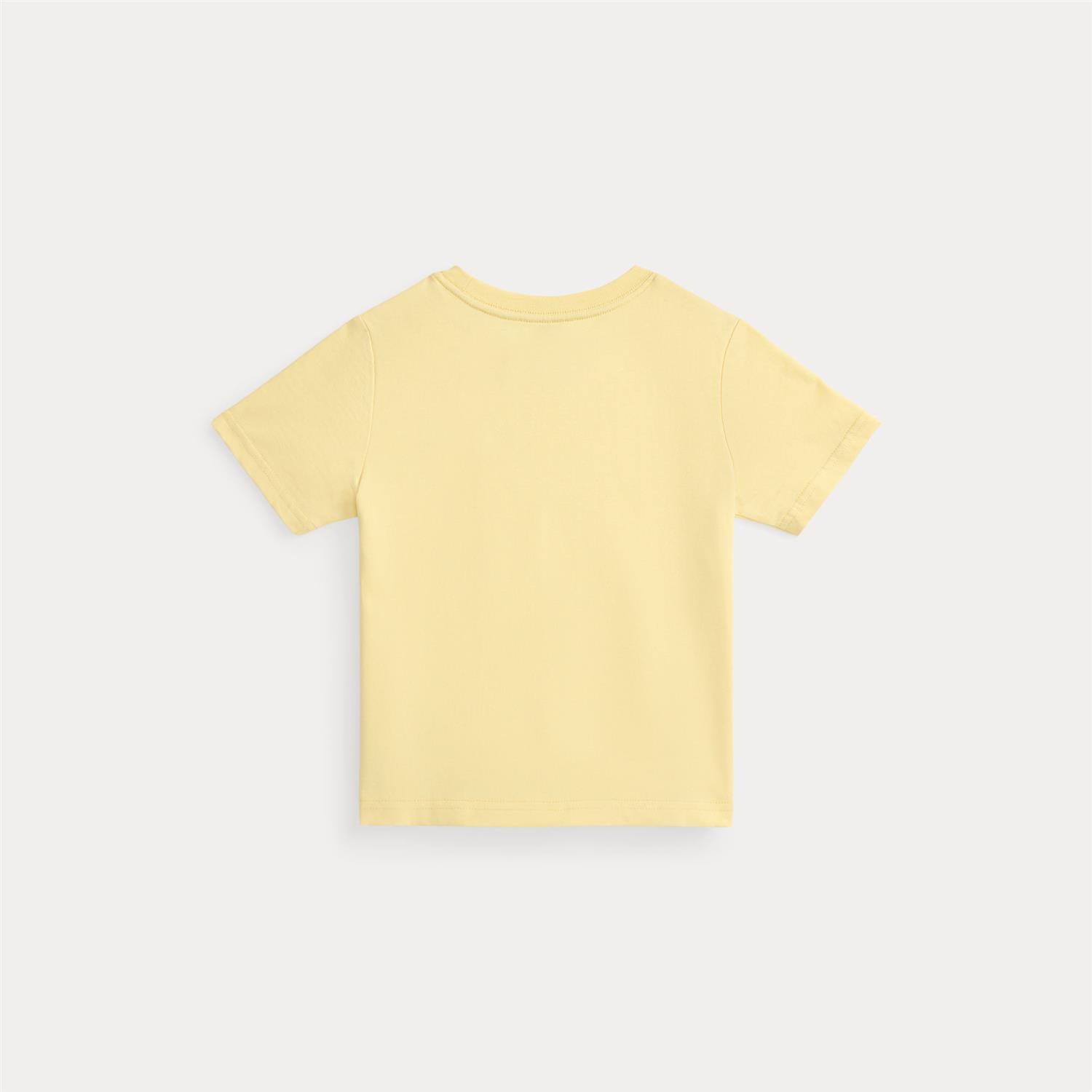 Pastellgul t-skjorte fra Polo Ralph Lauren for gutter, laget i 100% bomull med brodert blå hest. Komfortabel og stilig til hverdagsbruk.